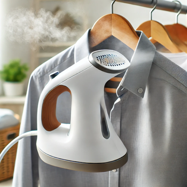 衣類スチーマーを使えば、ハンガーにかけたままシワを伸ばせます。アイロン台を使う必要がないため、数分でシャツやジャケットを整えることが可能です。