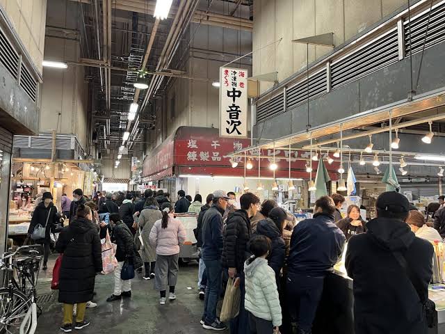 - 市場内の食堂では「マグロ丼」や「貝類の定食」が人気
